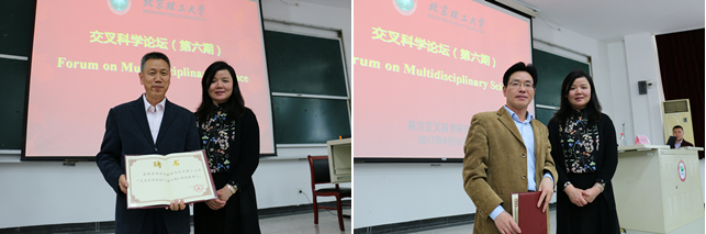 本期论坛邀请到2015年度国家技术发明奖二等奖获得者、材料学院教授杨荣杰,2016年度国家技术发明奖二等奖获得者、机电学院教授王海福作特邀报告。论坛报告前,前沿交叉科学研究院常务副院长阎艳教授为两位教授颁发了“特邀报告人”聘书,并感谢两位教授在百忙之中做客“交叉科学论坛”,与青年学者分享学术成果、科研经验和前沿学术研究动态,帮助青年学者成长。