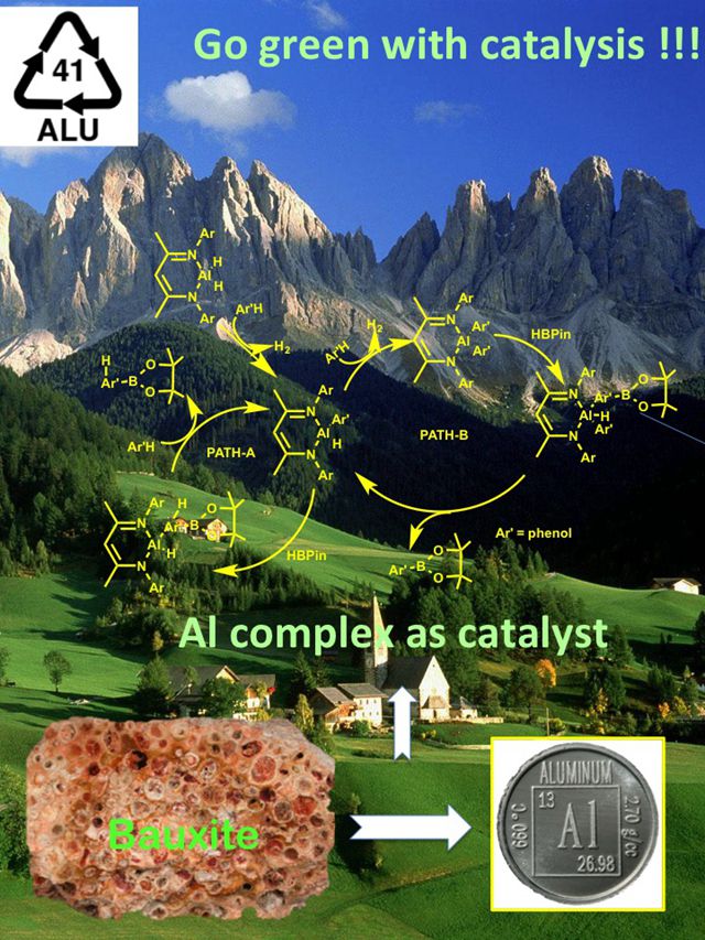 编辑:秦月 审核:王博 阅读次数:主族元素有机化合物与过渡金属有机化合物具有截然不同的化学性质,铝元素是地壳中含量仅次于氧和硅的最丰富的金属元素(含量7.4%),价格便宜, 无毒而环境友好。然而,将其用于催化有机反应从而替代传统的贵金属催化一直是国际化学界的难题。