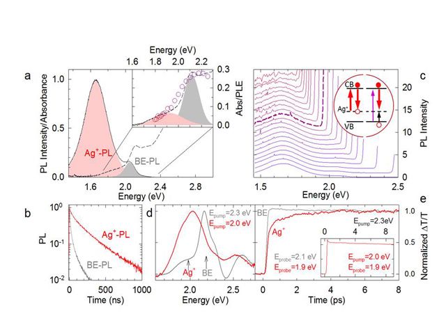 Ag+作为一类新兴掺杂元素,常用于III-V族和II-VI族半导体纳米材料中。Ag+的掺杂引入带间能级,并能够与主体导带形成光学耦合。因为其4d轨道全满,所以Ag+是非磁性的。掺杂引起的荧光归因于光激发的空穴转移到Ag+之后与导带电子的复合。这种光活化过程和Ag+电子构型的相关变化机理仍不清楚。基于此,米兰milan官方网站张加涛教授课题组与意大利Brovelli教授课题组合作,全面系统的研究了Ag掺杂CdSe纳米晶的激发衰减过程。他们发现一个有趣现象,光生空穴的捕获致使Ag+转变成顺磁性的Ag2+。激子的复合过程与光诱导磁性有着不可分割的关系。他们观察到强烈的光活化磁性和半导体纳米材料的稀磁行为。这一研究结果表明通过非磁性杂质掺杂而诱导的激发过程可以获得光学可转换的磁性纳米半导体材料。实现其光、电、磁学性能有效调控,促进其在光电自旋器件的应用!