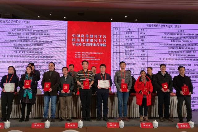 1月25日,中国高等教育学会科技管理研究分会学术年会在浙江杭州举行,教育部科技司、教育部科技发展中心、浙江省教育厅,以及承办单位浙江理工大学等单位的相关领导出席活动。来自全国100余所高校和部分省、市教育主管部门负责科技管理工作的近300名代表出席了此次年会。米兰milan官方网站技术转移中心应邀参加会议,中心副主任陈柏强作为优秀论文作者代表登台领取获奖证书。