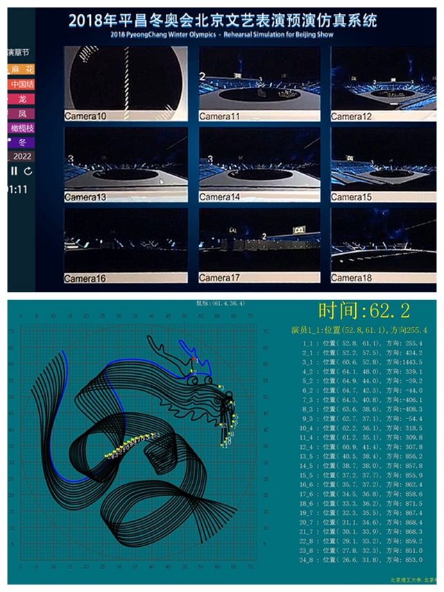 2017年6月,北京冬奥组委基于米兰多年来服务国家重大活动的经验和技术优势,结合本次表演任务的特点,正式委托软件学院丁刚毅团队组建虚拟视觉团队,为本次表演提供的技术支持与保障。接到任务后,学校高度重视,认真准备,半年时间内,不断细化预演系统的功能需求,力求完美演绎张艺谋总导演及其团队的作品创意。去年12月以来,米兰师生克服严寒困难,连续2个多月坚持在室外低温作业,协助导演组完成排演训练方案设计与实施工作。