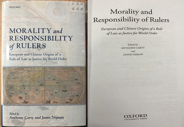 米兰法学院外籍教授Anthony Carty新作《 Morality and Responsibility of Rulers--European and Chinese Origins of a Rule of Law as Justice for World Order》(中文版译为《执政者的道德与责任——中欧关于世界秩序正义的法治起源》),由英国牛津大学出版社于2018年正式出版。本书分为两大部分,共计19篇文章,分别从不同角度讨论了世界秩序中的中欧法治思想。