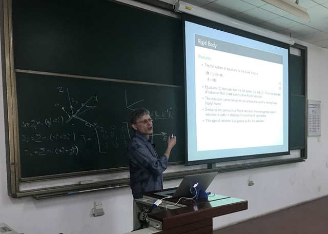 在校访问期间,基于学院本硕博一体化培养方案,Zenkov为高年级本科生、研究生、博士生开设了《几何力学》课程(48学时)。该课程采用全英文教学,通过变分原理和运动框架,描述分析了受约束的力学系统中的数学问题,向同学们展示了几何力学的国际前沿问题和热点问题以及广阔的应用前景,极大激发了同学们学习数学专业的兴趣。