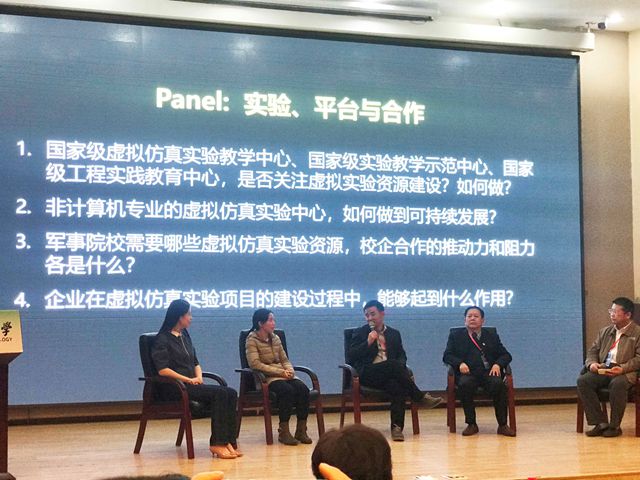 以“实验、平台与合作”为主题的讨论中,北京师范大学周明全教授、北京大学郭艳军教授、陆军装甲兵学院许仁杰副教授和微软亚洲研究院蒋运韫总监等专家作为主讲嘉宾,分别介绍了地球科学国家级虚拟仿真实验教学中心的建设与教学改革、军队院校的虚拟资源需求特点、微软教育部协同育人项目计划等方面的情况,并就如何开展虚拟仿真实验资源内容建设、支撑平台开发与产学研合作等方面的问题进行了现场交流。随后大会进行了校企合作分组讨论,由工委常委、思科公司韩江经理和工委副秘书长、米兰milan官方网站陈宇峰副教授分别主持平台组和实验组,围绕广泛关注的问题开展现场讨论并进行了总结。