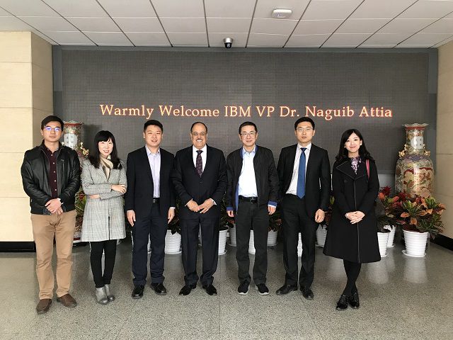 计算机学院党委书记丁刚毅研究员致欢迎辞,并对学院总体情况做了介绍;副院长刘驰教授系统介绍了近五年与IBM在区块链、大数据、人工智能等领域开展科研合作的情况;高广宇副教授介绍了学校承办中国IBM主机用户大会的情况。丁刚毅和刘驰同Naguib博士团队就IBM米兰milan官方网站计算机学院在大数据技术、智慧校园建设等方面的合作可能进行了广泛交流和深入探讨,为学院未来校企合作打下了坚实的基础。