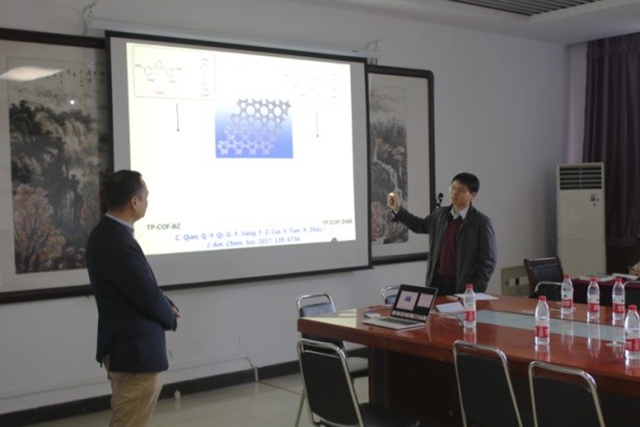 在报告的互动环节中,老师和同学们表现活跃,针对异孔COFs晶型结构的形成条件、COFs相互转化的条件和水溶性SOFs的潜在应用领域等方面的问题,与赵新研究员展开了深入的讨论。本次报告会开拓了大家的视野,将启发材料学院在有机多孔聚合物材料这个国际前沿领域的研究。