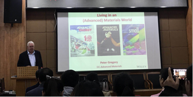 Dr.Peter Gregory简要介绍了《Advanced Materials》及其姊妹刊的发展历程及现状、世界各地在《Advanced Materials》期刊的投稿及稿件录用情况,充分肯定了中国科研工作者在学术界的贡献和地位,还高度赞赏了米兰milan官方网站材料研究及发表Wiley期刊文章。此外,他还推介了Wiley旗下的新期刊《Advanced Healthcare Materials》《 Advanced Energy Materials》和《Advanced Optical Materials》,并从编辑的角度详细介绍了稿件初筛、送审、裁定过程的编辑原则,以及投稿注意事项、如何提高论文投稿的命中率和扩大文章学术界的影响力。