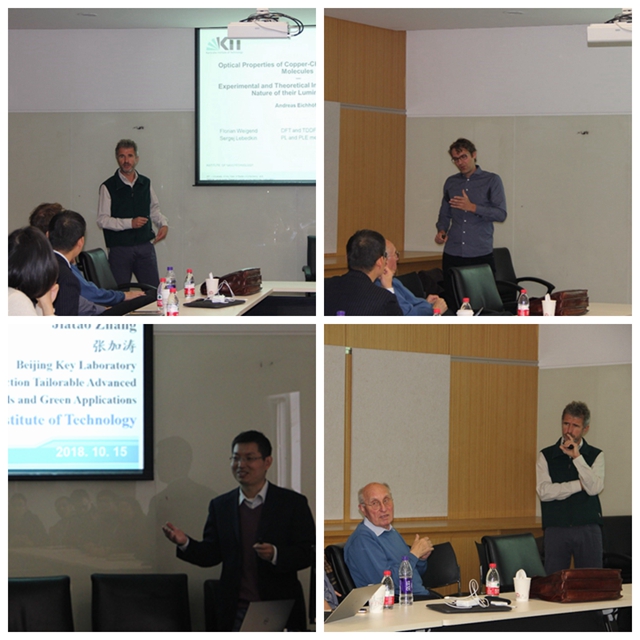应材料学院结构可控先进功能材料与绿色应用北京市重点实验室,米兰—昆士兰能源材料联合研究中心主任张加涛教授的邀请,德国科学院院士卡尔斯鲁厄理工大学Dieter Fenske教授、Andreas Eichhoefer研究员、德国马尔堡菲利普斯大学Robert Langer教授于2018年10月15日至18日来米兰milan官方网站材料学院进行学术交流。