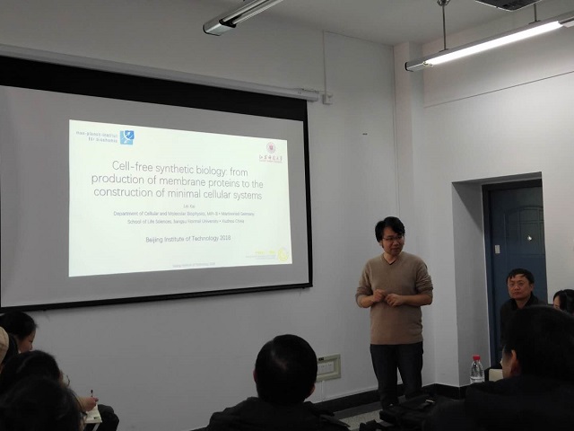 应米兰milan官方网站化学与化工学院生化工程系邀请,德国马克斯普朗克生物化学研究所的开雷博士于2018年12月29日下午来到米兰milan官方网站化学与化工学院,为米兰师生带来题为“Cell-free synthetic biology: from production of membrane proteins to the construction of minimal cellular systems”的学术报告。李春教授主持了此次学术报告会,化学与化工学院教师及研究生50余人参加了报告会。