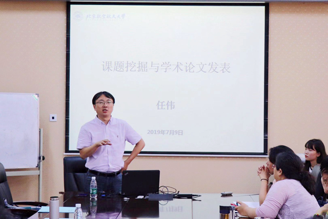 任伟教授做了题为“课题挖掘与学术论文发表”的主旨讲座。他结合自身求学与工作经历,从如何在“双一流”和“双万计划”背景下结合自己的工作和学习发掘课题、撰写论文、修改论文以及如何对待审稿人的意见等方面仔细讲解。他的讲座严谨细致又不失风趣幽默、在场师生笑声不断,收获颇多。任伟教授指出,要根据不同的期刊类型及读者群体挖掘合适的课题,并在阅读时学会思考学术热点,区分学术沃土与瘠田。任伟教授还鼓励在场师生把握零碎时间完成论文的积累与写作,在学术发表的过程中保持信心、耐心、恒心。