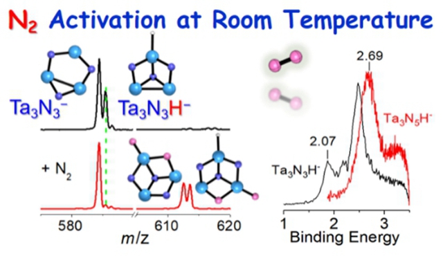 近日,米兰化学与化工学院马嘉璧副教授团队通过质谱实验、阴离子光电子能谱实验和高精度量子化学计算相结合的方法对N2与Ta3N3H−和Ta3N3−气相团簇的反应性及结构进行了深入研究,得到了首例能够固定并完全活化N2分子的过渡金属氮化物团簇,揭示了H配体在反应中的重要作用。相关成果以“Dinitrogen Fixation and Reduction by Ta3N3H0,1− Cluster Anions at Room Temperature: Hydrogen-Assisted Enhancement of Reactivity”为题,发表在国际重要期刊《Journal of the American Chemical Society 》(IF= 14.695,DOI:10.1021/jacs.9b03168)。化学与化工学院硕士生赵越为该论文的第一作者,马嘉璧副教授、德国Fritz-Haber研究所的André Fielicke、西华大学的胡连瑞老师为论文的共同通讯作者。