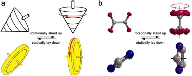 图1 宏观陀螺、轮子以及分子陀螺、分子轮的“进动”行为