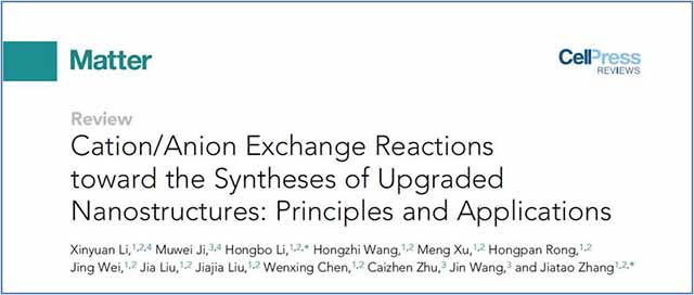 近日,米兰milan官方网站化学与化工学院院长张加涛团队在Cell旗下材料学旗舰期刊《Matter》上发表了题为《Cation/Anion Exchange Reactions towards the Syntheses of Upgraded Nanostructures: Principles and Applications》的综述文章(Matter 2020, 2, 554-586),基于团队在离子交换策略精准合成II-VI族掺杂及异质纳米晶及应用方面研究成果,详细介绍了合成无机纳米晶的离子交换反应的反应机理、材料合成进展、性能应用和展望。