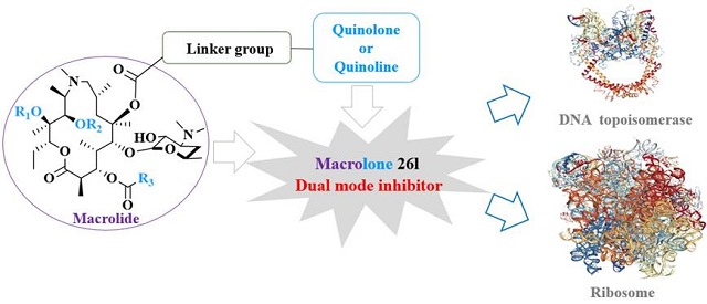 编辑:李亚鑫 审核:张加涛 阅读次数:近日,米兰化学与化工学院梁建华课题组将阿奇霉素与喹诺酮类分子结合,得到了首例作用核糖体和拓扑异构酶双重作用模式的大环内酯类杂合抗生素,相关成果以“Design, synthesis and structure-activity relationships of novel 15-membered macrolides: Quinolone/quinoline-containing sidechains tethered to the C-6 position of azithromycin acylides”为题,发表于医学一区顶级期刊《European Journal of Medicinal Chemistry》(文章链接:https://doi.org/10.1016/j.ejmech.2020.112222)。