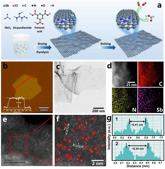 图1 Sb SAs/NC单原子催化剂的形貌表征