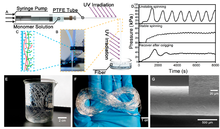图2. 自润滑纺丝方法与水凝胶纤维表征