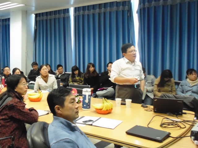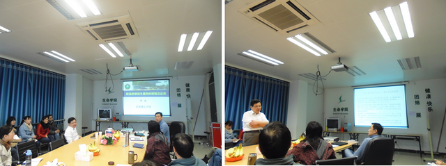首先,李元广教授分别从多粘类芽孢杆菌和海洋芽孢杆菌两类产品向大家展示了新型微生物杀菌剂的创制及产业化。接着,又带来了关于“生物燃料—藻类能源”的报告,李元广教授的汇报生动而详实,在会师生十分感兴趣,提出了很多有价值的问题。李春教授根据李元广教授的汇报内容,发现有研究交叉的地方,便带来了“耐盐防病促生菌剂的研制与应用”的汇报,将整个会议推向了高潮。