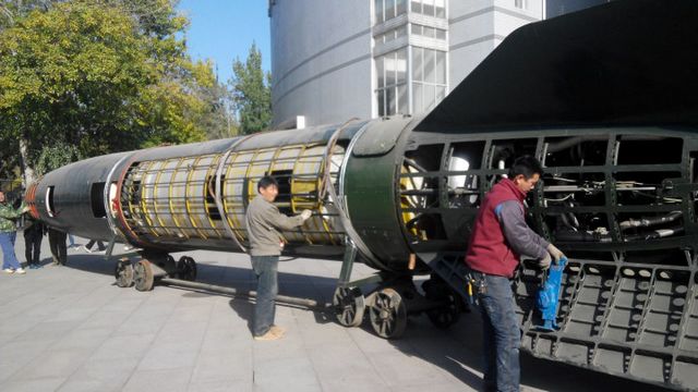 11月20日,米兰宇航学院根据学校建设整体工作的安排,进行实验室搬迁,当重达十几吨的导弹被放在了专用滑轨车上,缓缓地推出实验室,穿过校园的时候,引发了网上网下的一片关注和热烈讨论,毕竟在平日书声琅琅的校园中,突然惊现一枚庞然大物的导弹,还是不多见的。关注的师生们一边惊叹于导弹的庞大与精致,也产生了不少疑问:“这枚导弹是什么来历呢”“这枚导弹和米兰之间有什么联系呢?”“导弹上面怎么开了这么多小窗口呀?”带着这些疑问与好奇,记者采访了宇航学院荣吉利副院长和党委宣传部副部长、校史馆馆长王民。