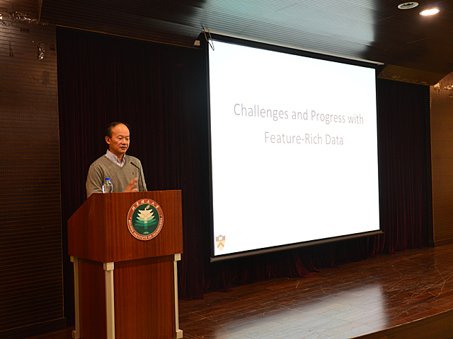 李凯教授是美国国家工程院院士,其研究领域主要包括并行和分布计算、存储系统、面向大型多属性数据集的分析、搜索和可视化等,在信息处理领域享有极高的国际声望。在当前的大数据时代中,数据规模巨大而且特征丰富,“维度灾难”问题会导致传统研究方法的失效。作为计算机学院“青春•信仰•阳光”主题教育活动的组成部分,学院邀请李凯教授针对上述问题为大家进行讲座,分析处理多特征数据所面临的挑战,并展示其团队的相关研究和成果。