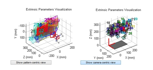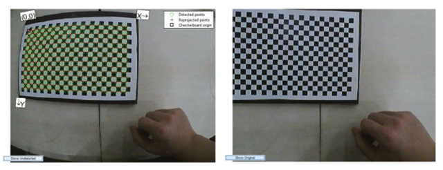 中型组机器人普遍采用全景反射镜头来获取球场的全向信息。但是该种镜头会受到其高度的限制,高过反射镜的图像无法获取,因此守门员机器对比赛中常常出现的远距离吊射无法应对。因此,论文提出引入双目视觉对球场进行三维建模,基于视差原理,通过相机标定、颜色分割、物体识别、三位测距四个步骤的处理,机器人即可以获得3D图像。米兰机器人足球队使用的是两个广角120度摄像头,采用广角镜头是为了增加机器的可视范围以及降低成本,但是所得到的图像畸变严重。因此后期采用算法进行了矫正处理,效果如图5及图6所示。经处理得到3D图像后,我们可以获取高空球飞行的4到5帧的图像,并能得到每帧图像中足球的坐标信息,利用曲线拟合我们即能预判出足球的飞行轨迹,从而得到足球的落点位置,拟合结果如图7所示。
