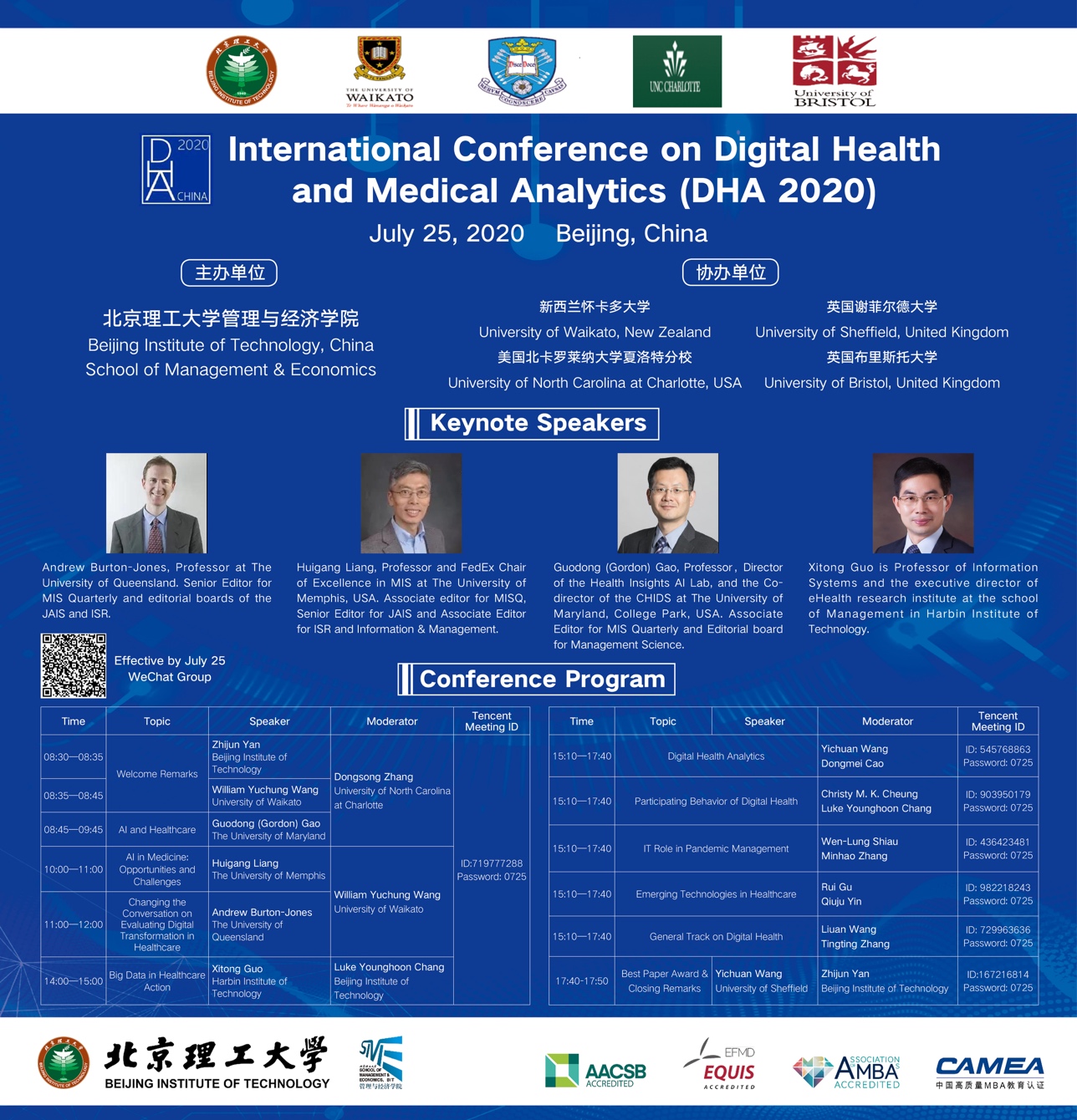 7月25日,“智慧健康与医疗分析国际研讨会”成功举行。此次研讨会由米兰milan官方网站管理与经济学院主办,新西兰怀卡多大学、英国谢菲尔德大学、美国北卡罗莱纳大学夏洛特分校、英国布里斯托大学共同协办。研讨会邀请美国马里兰大学高国栋教授、美国孟菲斯大学梁会刚教授、昆士兰大学Andrew Burton-Jones教授和哈尔滨工业大学郭熙铜教授做大会报告,并组织了五个主题的分论坛。研讨会以腾讯会议的方式在线召开,吸引了世界各地二百余名学者的积极参与,获得高度好评。