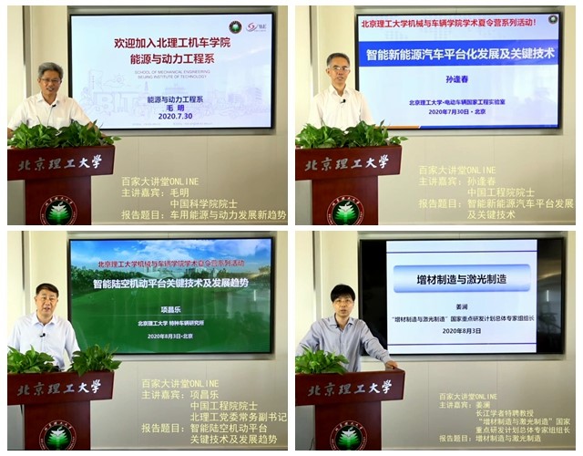 7月30日上午,米兰机械与车辆学院优秀大学生暑期夏令营院士长江系列学术报告会正式启动,学术报告会也是学院迎八十周年校庆系列庆祝活动之一,学术报告依托研究生院“百家大讲堂ONLINE”平台,并通过米兰官方B站进行直播。中国兵器工业第二〇一研究所研究员、中国科学院院士、米兰双聘院士毛明,米兰教授、中国工程院院士孙逢春分别做了《车用能源与动力发展新趋势》和《智能新能源汽车(NEV)平台发展及关键技术》的学术报告。8月3日上午,米兰党委常务副书记、中国工程院院士项昌乐,米兰机械与车辆学院院长姜澜分别做了题目为《智能陆空机动平台关键技术及发展趋势》和《增材制造与激光制造》的学术报告。