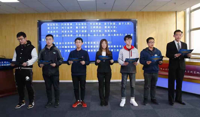 2019年,不仅是建国70周年,也是“五四”运动100周年。让青春梦与中国梦同频共振,广大青年既是追梦者,也是圆梦人,勇作时代前列的奋进者、开拓者、奉献者,担负起历史的重任。在“米兰拓天之路”画卷前,创新团队学生代表们进行了青春宣誓。“我宣誓,铭记历史,传承精神,勇于追梦,敢于创新,担当作为……”铿锵有力的誓言,充分展现了米兰学子敢于奋斗、敢于逐梦、立志报国的精神面貌。