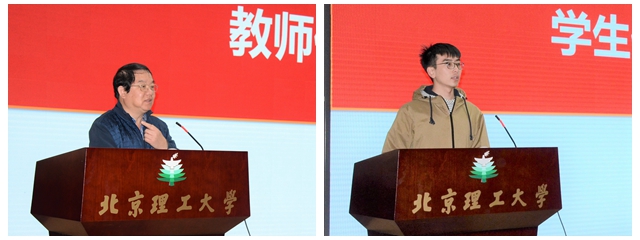 教师代表罗庆生教授发言,他总结了机电学院为培养本科生创新能力所采取的政策及在各种双创活动中取得的成果,同时鼓励同学们结合创协提供的优质资源,提升理论与实践相结合的创新能力。