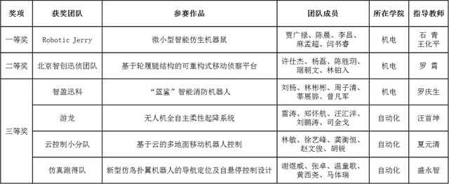 附第二届中国研究生机器人创新设计大赛获奖作品及团队: