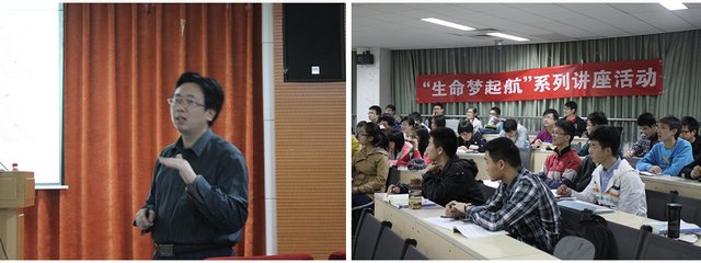 为了培养低年级本科生实验室科研兴趣,方便同学们走进实验室、走上科研道路,2014年3月26日“生命之家”社团在理学楼206举办了生命梦起航系列活动之“分享实验成果,感受科研魅力”讲座。本期讲座由生命学院徐远清老师作为主讲人。
