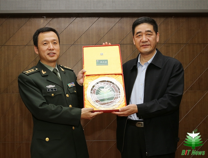 最后,赵显利副校长为张宁赠送大学纪念品,并称赞张宁是毕业学生的优秀代表,希望他与母校加强联系和合作,共同推动国家的国防事业不断向前发展。