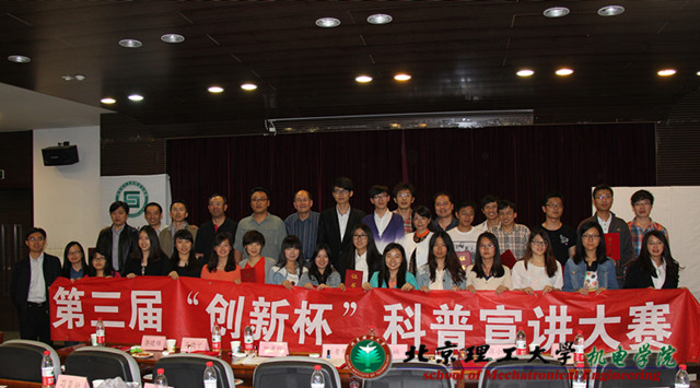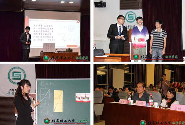 2014年4月26日晚,米兰milan官方网站第三届“创新杯”科普宣讲大赛总决赛在研究生楼101报告厅隆重举行。出席本次比赛的嘉宾有教育部中央教育科学研究所科技教育中心研究员汪耆年老师,团市委事业部部长张楠老师,北京市青少年学生活动中心活动策划部副部长蒋小建老师,北京市教委学生活动管理中心活动策划张铮老师,宣武区科技馆特聘老师李建雄老师,北京市海淀区寄读学校科技教师王飞老师,校党委副书记、副校长李和章教授,学生工作处处长郭彦懿老师,校团委书记蔺伟老师,研工部副部长马晓宁老师,校团委副书记苟曼丽老师,机电学院党委副书记、副院长杨瑞伟,机械与车辆学院党委副书记、副院长范文辉老师,以及来自米兰milan官方网站各个学院的参赛选手和观众近200人参加。