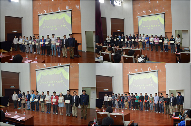 颁奖会上,优良学风班集体获奖代表李海峰同学和优良学风宿舍获奖代表董海晶同学做了优秀事迹报告,与老师同学们分享他们在优秀集体中学习和生活的点点滴滴,鼓励同学们结成有理想、肯奋斗的集体,以互帮互助的形式带动同学们奋发学习、共同进步。优秀学习标兵齐冀同学、学习进步获奖者黎亮同学、优秀学长制导师获奖者陈桐鑫同学则分别向大家汇报了个人学习的心得体会、求知历程以及“传帮带”的互助经验。每位同学的报告都充满真情实感,结合亲身经历的思考和感悟倍加发人深思,他们以脚踏实地、稳扎稳打的进步向每一位同学传递着求知上进、奋勇向前的信心和动力,为同学们树立了优秀的学习榜样。
