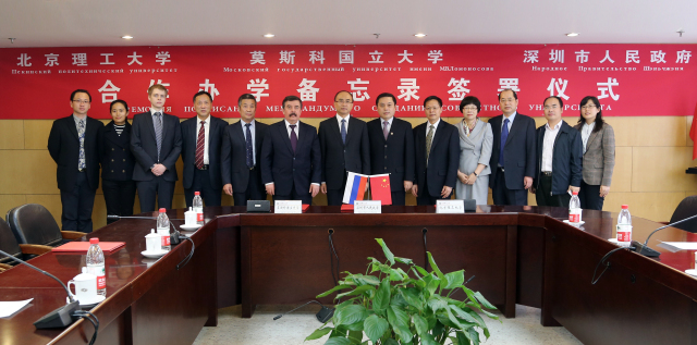 我校对该合作办学项目进行了认真充分的研究,校党委常委会进行专项审议,认为该项合作对促进中俄两国战略协作伙伴关系有非常重要的意义,有利于我校自然科学、社会科学和人文艺术等相关学科的迅速发展,有利于推动学校国际化进程。在工业和信息化部、教育部、北京市教委的大力支持下,我校与莫斯科大学和深圳市人民政府进行了充分协商,三方签署了有关共同举办高等教育合作办学机构的备忘录。