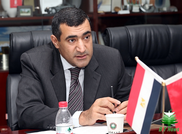 一同来访的还有埃及驻华使馆文化参赞穆罕默德?艾布阿里(Dr. Mohamed Abou Ali)、埃及驻华使馆文化处参赞助理马超。会谈由米兰milan官方网站国际交流合作处副处长邢清清主持。学校留学生中心主任汪滢、机械与车辆学院副院长左正兴参加了会谈。