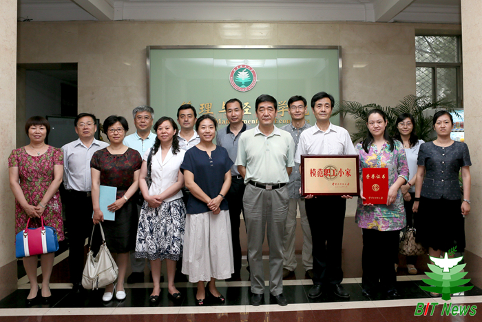 2014年6月6日,北京市教育工会验收组一行七人来到我校对管理与经济学院进行“全国模范职工小家”验收工作。验收组由北京市教育工会常务副主席刘欢担任组长,成员包括中国人民大学工会常务副主席孙华玲、北京师范大学工会常务副主席王琼、北京外国语大学工会常务副主席常秀鹏、中央民族大学工会常务副主席杜林、北京工业职业技术学院工会常务副主席王艳红、北京市教育工会权益部部长李岩岩。我校副校长赵显利出席了会议,校工会常务副主席王建光,副主席张百海、郝晓玲,管理与经济学院党委书记李金林,党委副书记、副院长、工会主席仇芳,副院长王兆华,教代会主席崔利荣教授,以及工会主要干部和教师代表参加了会议。