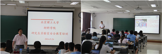 2014年5月26日下午,材料学院在研究生楼406教室举办了院级安全培训。学院副院长庞思平教授出席培训并发表了动员讲话,陈煜副教授做了专题报告,他根据材料学院教学科研特点,着重为同学们介绍了实验室防火、防爆、防腐蚀、防触电的注意事项及对遇到危险情况的处理措施。要求学员们明确自己的责任与义务,树立安全意识,严格执行安全操作,保障实验安全。培训结束后,学院组织学员进行了安全考试。