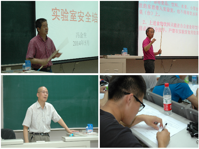 化工与环境学院于2014年5月28日在研究生楼501教室举行了院级安全培训。主管实验室院长冯金生老师出席并做了题为“实验室安全培训”的报告,化学工程与控制系实验室主任赵之平老师、应用化学与制药系实验室主任吴玉凯老师分别做了题为《实验安全教育》和《危险化学品安全与防火防爆》的专题报告,培训之后学院还组织签订了《实验室安全责任书》,并进行了院级安全考试。