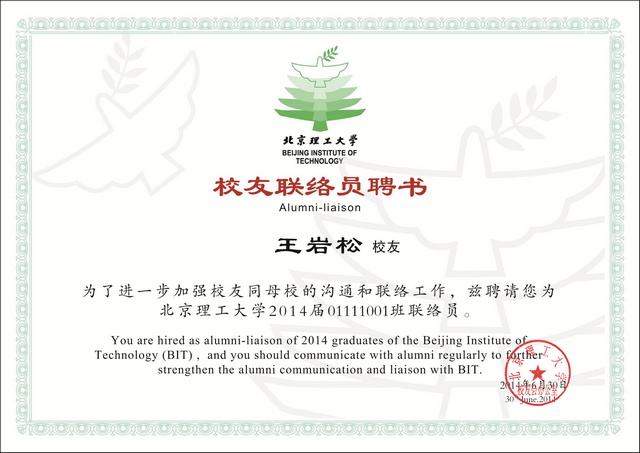 经过本人申请、学院推荐,全校共选拔了王岩松、黄爽、易璐、赵明、孙振源、梁继轩、田宏泽等201名毕业生为班级联络员,殷子明、李冰、朱幸达、曾博宇、王嬿舒等34名地区校友联络员(具体信息见链接http:/tzgg17/ggxx/104072.htm )。他们是米兰milan官方网站校友工作的重要辅助力量,是广大校友与母校之间交流互动的桥梁、与工作单位所在地的校友会对接的纽带,是促进本班同学之间继续保持联系、增进感情的关键力量。