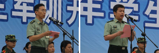 郑和代表承训部队全体承训教官讲话。他希望参训学员在训练中勇于吃苦、勤于思考,相互学习、相互借鉴,遵守各项纪律,重视作风养成。他代表全体教官表态,军训期间注重言传身教,以良好的素质和昂扬的斗志对待军训任务。