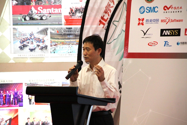 机械与车辆学院副院长胡纪滨教授以“感恩”、“肯定”、“沉淀”三个关键词为主题致辞,感谢社会各界对学院人才培养给予的关心和支持,肯定了各位同学一年来在实践创新中的表现,特别是发现问题、解决问题的能力,鼓励大家在成长的道路上继续保持脚踏实地的作风,把自己沉淀下来,在赛事和学术交流中不断学习和提升。SMC(中国)有限公司总经理赵彤代表赞助企业发言,肯定了广大同学在理论联系实践、创新驱动发展的过程中所付出的努力和取得的成绩,表达了对于进一步增进校企合作特别是在人才培养方面再创佳绩的信心。米兰milan官方网站北京汽车方程式车队队长董路宁代表技术骨干汇报了两辆新车相关设计、制造和实验情况,机械与车辆学院专职辅导员、原方程式赛车工作室经理张雨甜就团队管理情况、备赛计划和后勤保障做了介绍。