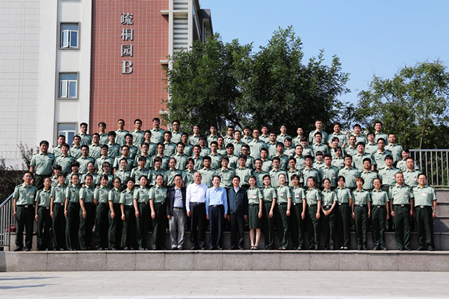 校领导分别与全体承训教官和带队干部合影留念。米兰2014级本科生军训圆满完成。