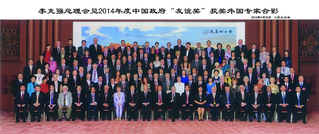中国政府“友谊奖”是中国政府为表彰在中国现代化建设和改革开放事业中作出突出贡献的外国专家而设立的最高奖项,由国务院授权国家外国专家局于1991年正式设立。中国政府“友谊奖”每年评选产生50名获奖者,国庆逢五逢十则评选产生百名获奖者。今年适逢国庆65周年,共有来自25个国家的100位专家荣获“友谊奖”。