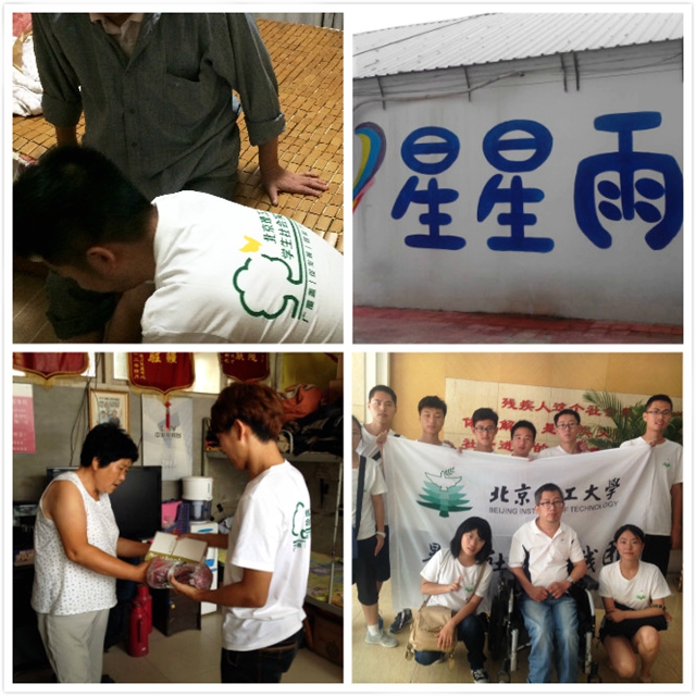 佘艺的团队在发放问卷,实地采访上都下足了功夫,实现了“心语”主题的公益活动。6月组团,8月出发,丁柯委的实践团队为回放敬老院做了充分准备。胡景畅的团队前往电影《海洋天堂》里的“北京星星雨教育研究所”关爱自闭症患者,传递来自背离的温暖。刘旺等5名同学则于7月8日走进滦南县“爱心小院”,进行为期四天的社会实践活动。