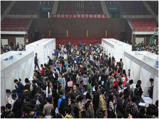 2014年10月19日,我校在体育馆主馆举办了“中国航空工业集团专场招聘会”,北京航空精密机械研究所、成都飞机工业(集团)有限责任公司、沈阳黎明航空发动机(集团)有限责任公司、中国空空导弹研究院等中国航空工业集团下属79家单位前来参会。这是本学期我校为2015届毕业生举办的第一场大型军工类专场招聘会。在此之前,我校还举办了各类不同规模的招聘会114场。