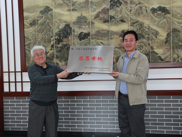 最后,老班长张树森代表全体同学向学院赠与了“感恩母校”的牌匾,左建华副院长代表学院接受了这一沉甸甸的礼物。
