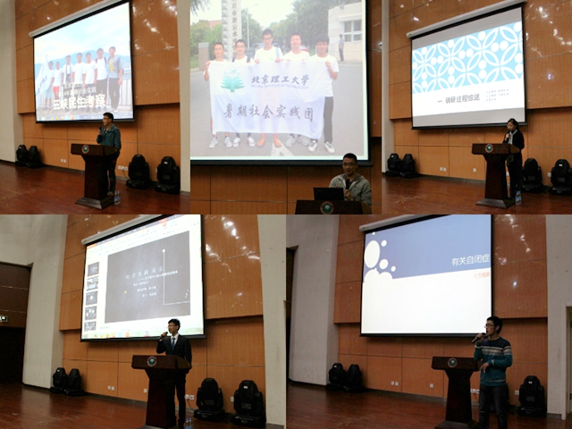 分享会开始之初,主持人为所有到场人员介绍了从暑期社会实践发团仪式到本次成果交流会逾百天的实践工作历程,并播放了一段关于本次社会实践历程宣传片,充分展现出本次社会实践内容的多样以及实践成果的丰富。接下来,5支社会实践团队分别从社会实践团队组建、立项筹备、前期准备、中期实施、问卷制作、实践调研中的问题、实践体会和收获等内容全面展示了一支社会实践团队的运作全过程,为2014级学生开展社会实践打开了思路,传授了经验。