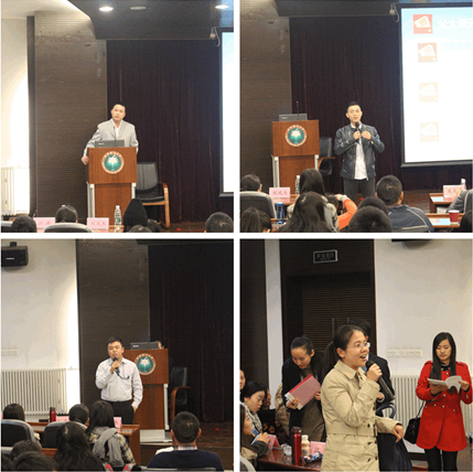 随后,其他嘉宾根据自身国考或工作经历,详细讲述了从事公务员工作的真实感受。申论近九十分的公安部团委书记赵庆林针对申论的复习提出了六点建议,分别是:做真题、找热点、上网查、建思路、打模板、练卷面。审计署团委书记曲炜结合中央国家机关信息化建设的大背景,介绍了计算机相关专业毕业生在公务员系统的就业前景。中央办公厅优秀青年干部江城从«恋爱的犀牛»这一美丽的爱情故事说起行测复习经验,尤其强调了资料分析题的重要性。外交部团委书记李平一,与同学们分享了他在巴勒斯坦哈马斯做首席外交官和他在利比亚协助撤离三万中国公民时的经历,让在场所有人不禁热泪盈眶。