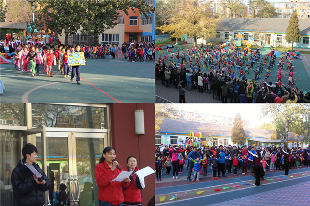 运动会分表演与竞赛两部分,采用集体及分组形式进行,孩子们先集体表演了武术操及器械操,整齐划一的动作表演得到家长们热烈的掌声。竞赛部分为班级场地轮换运动项目及亲子运动项目。班级运动项目包括:“推小车”、“钻爬”、“十米往返跑”、“滚轮胎”。小运动员们在欢快的乐曲伴奏下,开始紧张而又激烈的比赛;操场上一阵阵呐喊声、欢笑声,营造出热烈欢快的场面,把我们带入了一个儿童的世界。