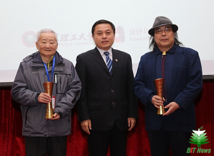 胡海岩校长向原工业设计系筹备组组长吴永健教授、原设计艺术学院院长张乃仁教授颁发“特殊贡献奖”,对老一辈教育工作者所作的贡献给予了高度评价。
